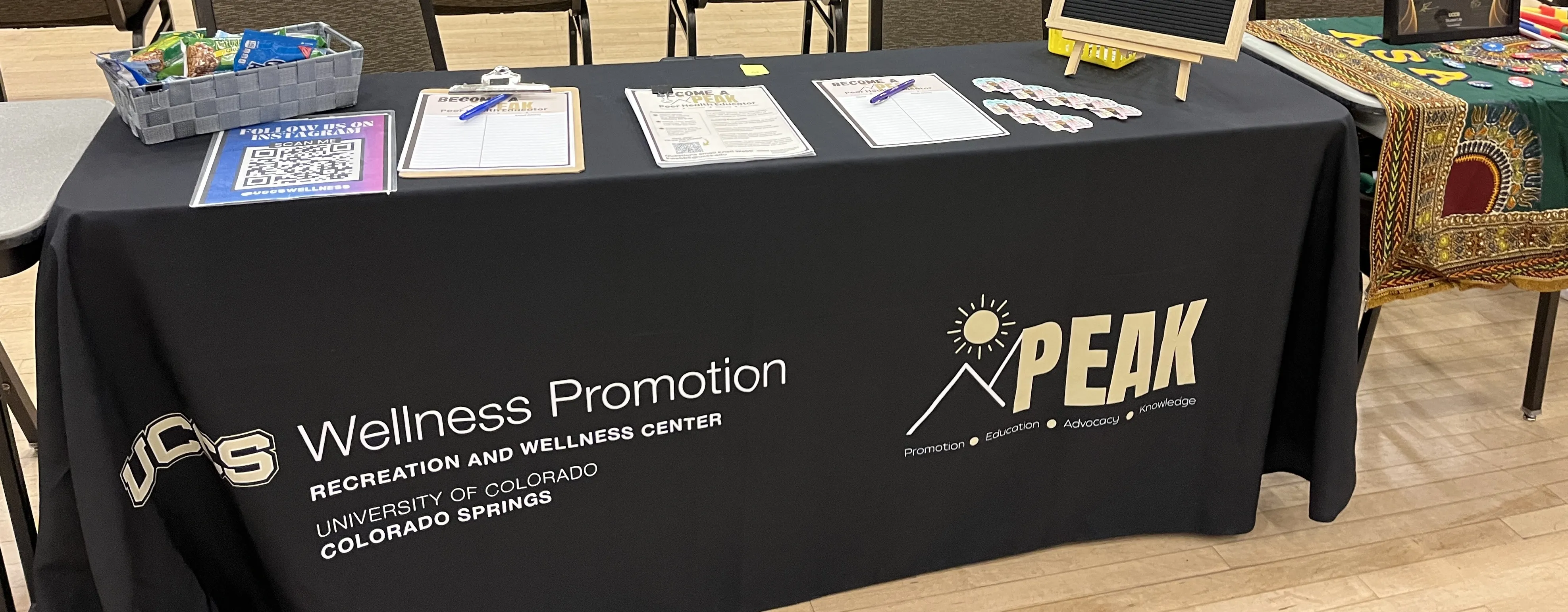 PEAK Peer Health Educators at UCCS provide evidence-based, peer-led education on a variety of health topics to support student wellbeing. Through interactive tabling and workshops, campus events, and outreach, we empower students to make informed health choices and foster a culture of wellness in our community.